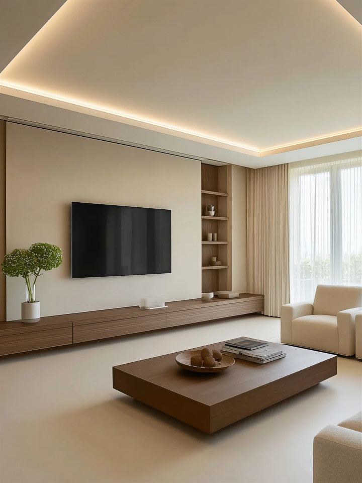白色墙面与胡桃木家具之间,